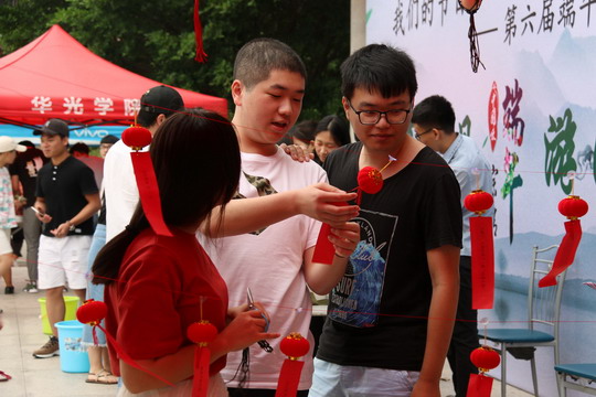 为弘扬传统文化,丰富校园生活,让学生们感受端午节独特的习俗,6月13日下午,由校团委主办,校社团联合会承办的第六届端午游园活动在教学楼展示厅门口隆重举行,校长陈雅芳、党委副书记陈雄华等校领导同华光师生一起包粽子、猜谜语、玩游戏,传承经典,弘扬中华优秀传统文化,令6月的校园飘满粽叶的香气和欢乐的笑声。