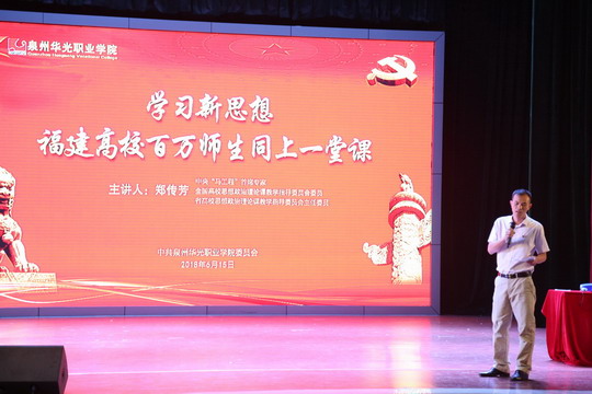 为进一步深入学习贯彻习近平新时代中国特色社会主义思想,6月15日上午,学校特邀中央“马工程”首席专家、全国高校思想政治理论课教学指导委员会委员、福建省高校思想政治理论课教学指导委员会主任郑传芳教授在吴文季音乐厅作题为《中国特色社会主义是改革开放以来党的全部理论和实践的主题》的专题宣讲。宣讲会由党委副书记陈雄华主持。