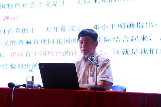 郑传芳教授从中国特色社会主义是党的艰辛探索的重要成果、中国特色社会主义是当代中国最鲜明的时代特征、学习习近平新时代中国特色社会主义思想、坚定中国特色社会主义的“四个自信”等四个方面入手,结合习近平总书记在北京大学师生座谈会和纪念马克思诞辰200周年大会上重要讲话精神,深刻阐释了习近平新时代中国特色社会主义思想的精神实质以及开辟中国特色社会主义道路、开创社会主义现代化建设新局面的历史必然和重要意义。