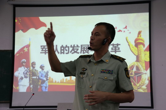 陈雄华结合自己参加海地维和经历,向同学们介绍了人民军队的重要性和我军的优良作风,结合军事案例,围绕着“新时代建设一支什么样的强大人民军队,怎样建设强大人民军队”为同学们阐释习近平强军思想,引用古今中外案例阐述富国和强军的重要关系和意义,鼓励同学们响应党和国家号召应征入伍,使同学们更加真实地了解和认识人民军队,理解富国和强军的重要关系,掌握习近平强军思想基本内容。