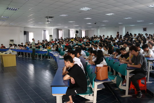 6月20日上午,中共泉州华光职业学院党委副书记陈雄华在南区教学楼A307报告厅为17级部分学生上专题思政课,课程主题为《全面推进国防和军队现代化》。