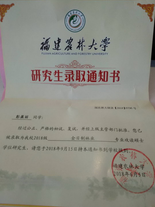 我叫彭盈丽,来自安徽六安,2013年我被泉州华光职业学院播音与主持专业录取,很荣幸地成为了华光的一份子。华光,是我第一眼就热爱的地方,也是迄今最常回来的地方,校园的荷花池,钢琴楼,雕塑建筑,都曾留下我生活和学习的身影,是亲爱的老师们的谆谆教诲,让我养成了良好的生活习惯和学习态度,在这三年里不负韶华,收获满满,并于2016年考入三明学院就读本科专业旅游管理与服务,2018年又顺利考入福建农林大学研究生院,打算攻读林业硕士。