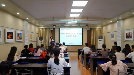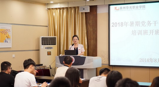 8月20日下午,我校2018年辅导员暨党务干部研修班开班式在办公楼第二会议室隆重举行,全体辅导员和党务干部参加开班式,仪式由党委副书记陈雄华主持,校长陈雅芳发表讲话。