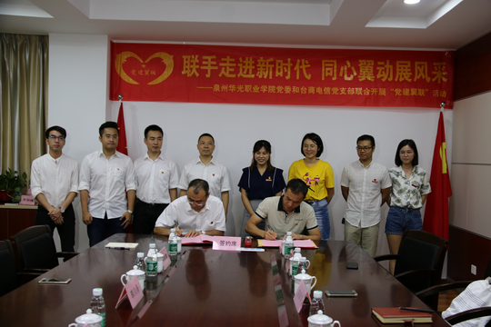 为深入学习贯彻习近平新时代中国特色社会主义思想和党的十九大精神,落实新时代党的建设总要求,开创新时代基层党建新局面。8月28日下午,我校党委与中国电信台商分公司党支部举行“党建翼联”实践活动签约仪式。