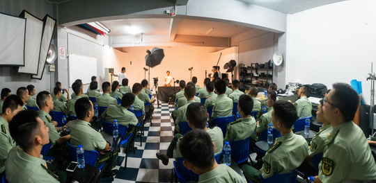 同一天,福建省边防总队第二期融媒体摄影培训班举行隆重的开班仪式,60名边防干警神采奕奕齐聚华光,学习摄影艺术和技巧,解读光影文化,成为我校一道亮丽的风景线,为开学第一天注入无限活力。