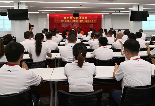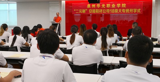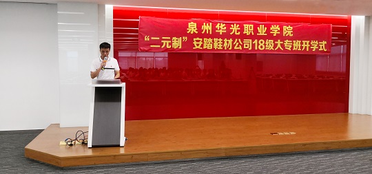 9月12日,我校运动科技学院赴安踏鞋材公司举行“二元制”大专班开学仪式,我校副校长林述琦,安踏集团副总裁柯育发,运动科技学院副院长蔡春娥,科研处副处长林娟,以及运动科技学院相关专业教师和“二元制”大专班全体新生参加仪式。