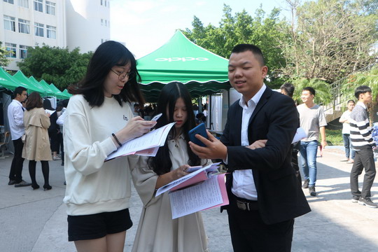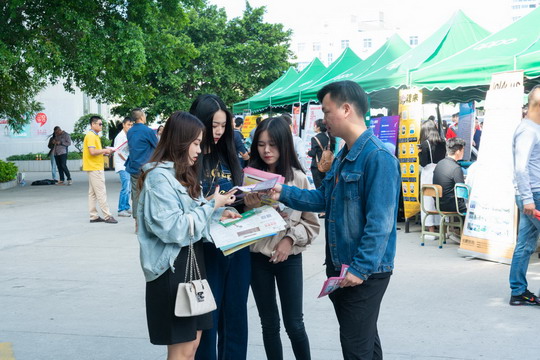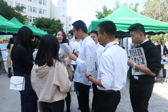 今天上午,我校与中国海峡人才市场泉州分部联合举办的“2019届校园大型招聘会”在我校龙影图书馆前隆重举行。我校用心栽培的1600多名2019届毕业生即将走上工作岗位,为社会各有关行业和区域经济的发展提供人才保障。我校领导对本次招聘会高度重视,校长陈雅芳,副校长徐颖惠,各二级学院院长、书记,以及学生处等有关部门负责人都亲临现场关心指导。毕业生们纷纷拿着简历,精神抖擞地投入到应聘的队伍当中。