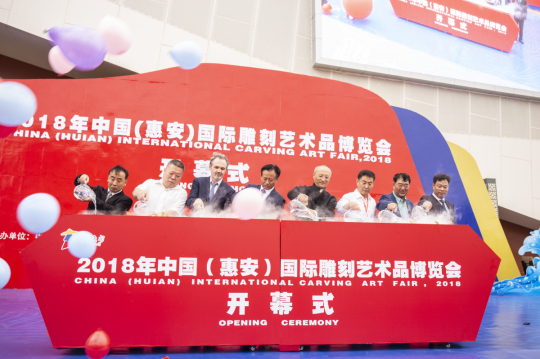 11月9日上午,惠安雕艺文创园万商云集,嘉朋满座,由中国工艺美术协会、中国雕塑协会、中国石材协会、中华文促进会、中国工艺美术学会和惠安县人民政府联合主办的2018中国(惠安)国际雕刻艺术博览会隆重开幕,而泉州华光职业学院再设计学院院长李廷贵教授创作的、刚获得世界之最认证的101尊中华姓氏现代雕塑群也受邀参展。