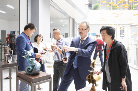 本次博览会以“拥抱世界石雕之都,追逐千年雕艺梦想”为主题,特点是精品展示专业化,平台交流国际化,营销合作市场化。展出石雕、木雕、玉雕和其他工艺品,及雕刻设备、原辅材料。展会总面积达3万平方米,设置600个国际标准展位,室外展区4000平方米,雕艺博物馆内6000平方米,我校中华姓氏现代雕塑群就在雕艺博物馆内展出,展厅约1000多平方米,主题是“情系根·魂·梦——中华姓氏现代雕塑群相约崇武古城”。造型百态、形状各异的姓氏雕塑精致又极富艺术感,吸引众多海内外游客的关注和欣赏,俄罗斯艺术家联盟主席、雕塑家安德烈·科瓦里丘克也特意到展厅参观,并饶有兴致的向李廷贵教授询问雕塑创作的初衷、设计理念等。