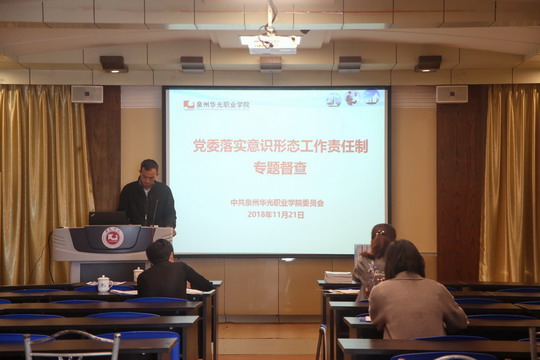 为深入推进全面从严治党,进一步落实高校党委意识形态主体责任制度,11月21日上午,泉州市教育局副局长蔡琦瑜一行莅校开展意识形态工作专题督查。