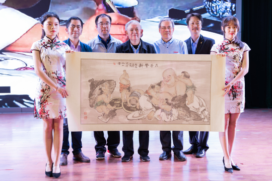 讲座上,周梁泉馆长首先向大家介绍永春的风土人情以及非物质文化遗产代表作:永春白鹤拳、永春纸织画、永春老醋等。随后,八十高龄的周文虎老师向大家介绍永春纸织画的发展历史和技法特点,分享他个人拜师学艺的心路历程与创作体验,并向我校赠送了一幅珍贵的代表作品——“六子登科”。周文虎老师的作品近看纸痕交织、极富立体感,远观整幅作品就像覆盖了一层薄纱,呈现出独特的视觉效果。