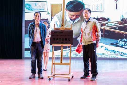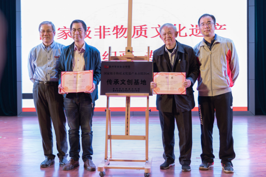 讲座上,我校同时成立了国家级非物质文化遗产永春纸织画传承文创基地,并举行揭牌仪式。徐颖惠副校长和吴华轩副校长分别向周梁泉馆长和周文虎老师颁发纸织画传承文创基地高级顾问和技能大师的聘任证书。