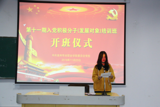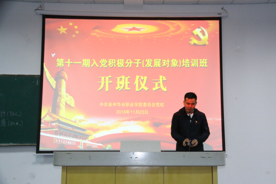 11月23日晚,我校第十一期党校培训班开班仪式于教学楼A307举行。党委副书记陈雄华,各党支部书记及党校学员参加了本次会议。仪式由校党委委员、党办主任郑桂梅主持。