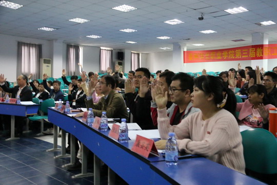 会上,各代表团与会代表表决通过了围绕学校申本建设和提高员工福利的议案,并提出具体的操作意见和建议。