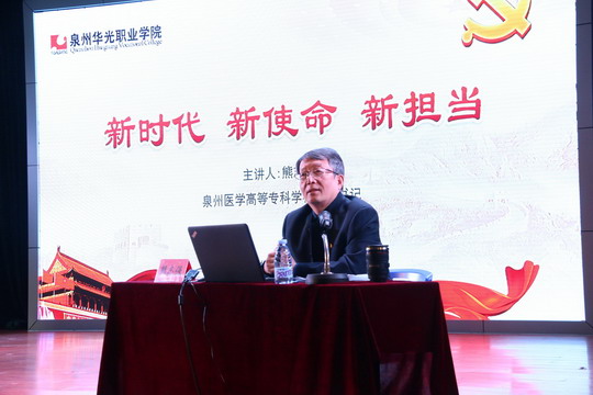 为深入学习宣传贯彻全国教育大会精神,12月11日下午,我校特别邀请泉州医学高等专科学校党委书记熊志强在吴文季音乐厅作题为“新时代,新担当,新作为”的主题宣讲。讲座由校长陈雅芳主持,全体校领导、中层干部及部分学生到场聆听。