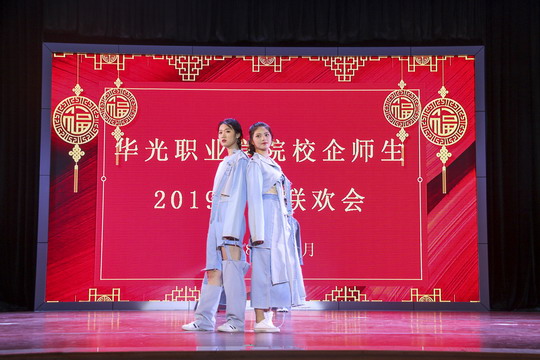 12月27日晚,华光学院校企师生2019新年联欢会在吴文季音乐厅举行,来自贵人鸟、安踏、七匹狼等企业二元制大专班的一百多名师生回校和在校师生共同欢庆。
