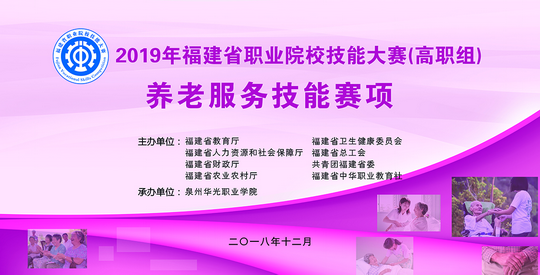12月29日下午,由福建省教育厅等8个单位共同主办、泉州华光职业学院承办的2019年福建省职业院校技能大赛的养老服务技能(高职组)赛项在我校隆重开赛,来自全省的6所高职院校的12名选手、指导老师、领队、企业人员以及省、市有关领导,华光学院领导师生齐聚吴文季音乐厅,参加大赛的开幕仪式。