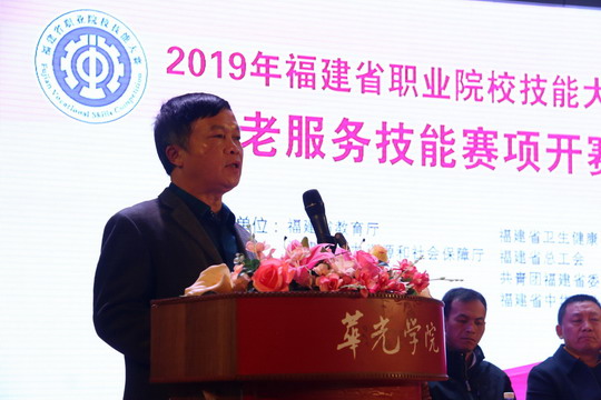最后,我校董事长吴其萃宣布2019年福建省职业院校技能大赛养老服务技能(高职组)开赛。