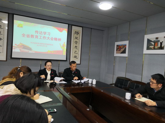 3月1日上午,我校组织全体党支部书记和中层干部召开全省教育大会精神传达会,学习贯彻落实教育大会精神,传达会由陈雅芳校长主持,陈雄华副书记传达会议主要内容和精神,会议要求各部门、各党支部根据教育大会主要精神,形成贯彻落实的具体措施和方案。