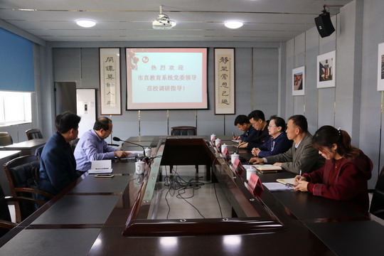 3月19日上午,市直教育系统党委专职副书记胡建军、党委办主任庄映峰莅临我校调研党建工作,我校校长、党委副书记陈雅芳,党委副书记陈雄华以及相关部门负责人参加调研会。