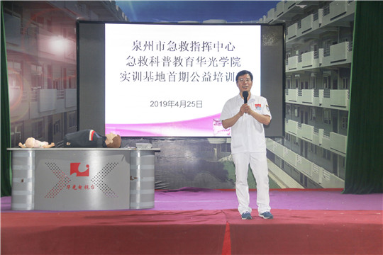 当意外事件突发,生命即将逝去,如何在“黄金时刻”获得及时、有效的救助,是重燃生命之火的关键,“人人掌握救人技能,人人都有获救机会”!为了让广大群众学会急救的基本知识,能在关键时刻展开自救和互救,泉州华光职业学院与泉州市急救指挥中心共建了全国首家校园急救科普教育实训基地。该基地落址泉州华光职业学院,将不定期的以免费、志愿者参与、以真正掌握急救技能为基本要求的培训方式为广大师生和台商投资区民众开展急救科普知识教育和技能培训活动。