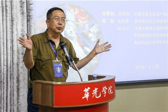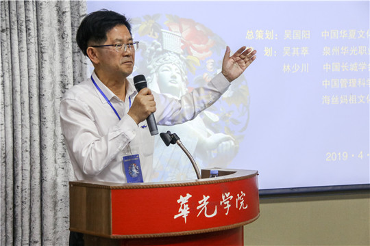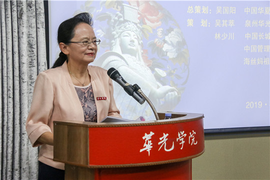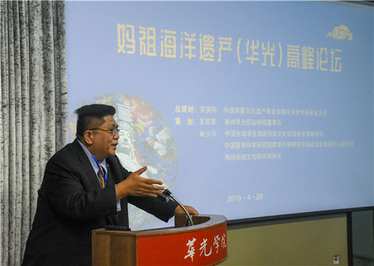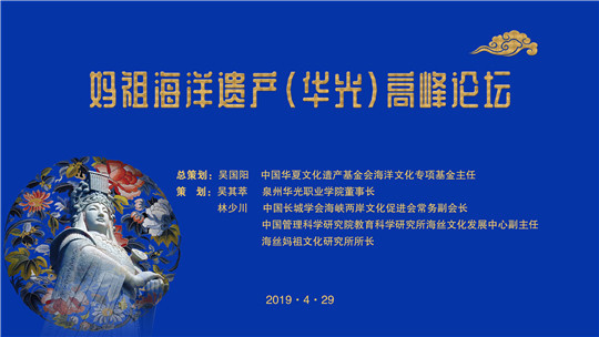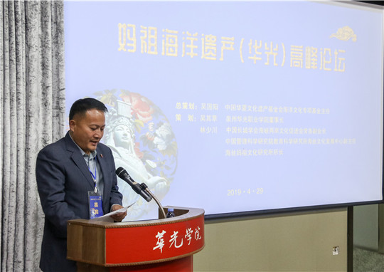 4月29日下午,春意盎然,正值第二届“一带一路”国际合作高峰论坛在京召开之际,由中国华夏文化遗产基金会海洋文化专项基金与泉州华光职业学院共同举办的“第一届海丝妈祖文化节”之“妈祖海洋遗产(华光)高峰论坛”在华光五代同堂馆隆重举行。联合国海事局组织世界海事遗产协会(新加坡)主席弗雷德里克.弗朗西斯上校,安哥拉共和国国家奥委会驻新加坡特命大使、(海商海军)大校阿尔伯特张大使,中国人民大学文艺复兴研究院教授仲文,台湾明道大学妈祖文化学院主任谢瑞隆以及来自国内外各地文化、文艺等非物质文化遗产相关行业的专家、学者出席论坛。论坛由我校校长陈雅芳主持。