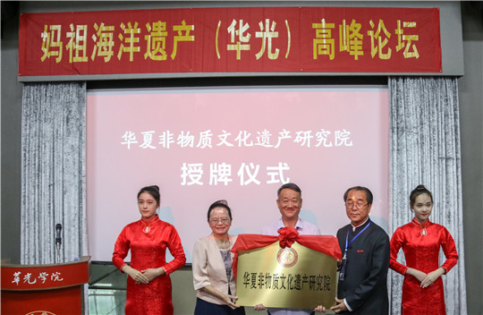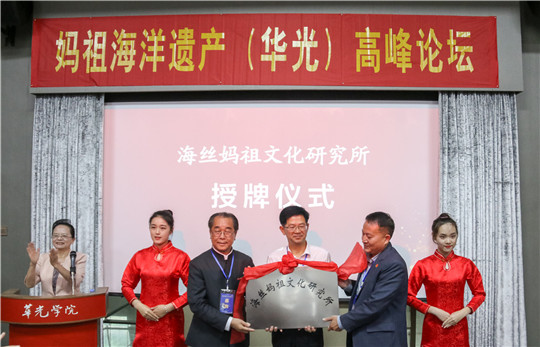 论坛结束后,我校领导与来宾共同为“华夏非物质文化遗产研究院”和“海丝妈祖文化研究所”揭牌,第一届海丝妈祖文化节正式启动,主办方将陆续同有关企业联合举办与妈祖相关的诗歌、摄影、绘画等大赛,让此次论坛所迸发的智慧形成各有关项目即刻落地、起航。