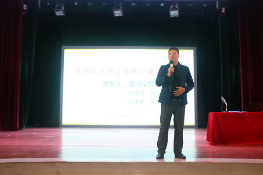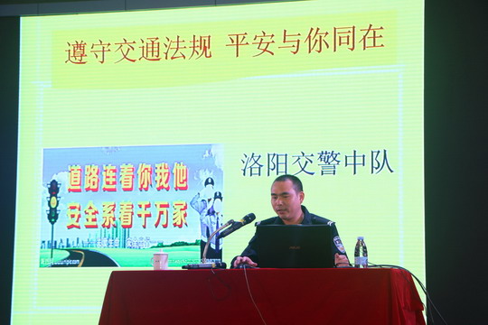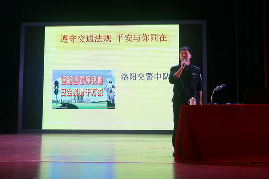 为进一步提高师生交通安全意识和自我保护能力,有效预防和减少校园交通事故,5月8日下午,我校邀请洛阳交警中队指导员邱明凡和庄本基警官到校举办交通安全教育讲座,我校党委副书记陈雄华、保卫处副处长郑金柄及全体辅导员、保安、校卫队和部分师生参加。