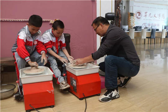 开营仪式上,艾珍老师代表研学实践基地向参加研学的师生表示热烈的欢迎和诚挚的问候,并希望全体同学能在华光文博园有所收获。群力小学黄校长发表讲话,对本次参加研学活动意义做了简要概括,同时指出要求师生们正确理解研学的意义,要求同学们不能走马观花,要有所感悟,有所启发。霞美小学庄校长强调研学活动的纪律和安全问题,希望同学们度过快乐又有意义的一天。随后,艾珍老师向群力小学和霞美小学师生代表授牌、授旗。