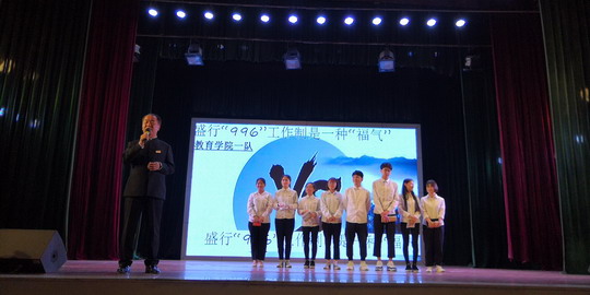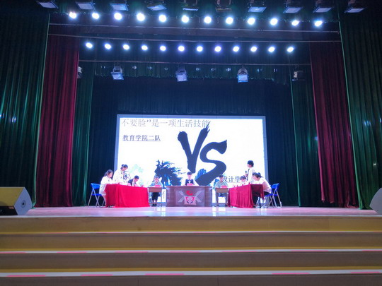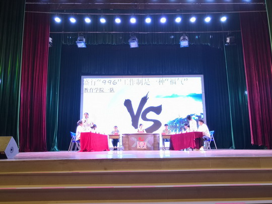 校女生部的舞者在灯光下用热情洋溢的舞蹈拉开本次辩论赛序幕。由健康管理二队代表的正方和摄影学院二队代表的反方带来的第一场比赛——朋友圈是否应该增加访客记录,立刻点燃全场观众的好辩之心;第二场比赛出场的队伍是正方教育学院二队和反方设计学院一队,“‘不要脸’是不是一项生活技能”的辩题为台下观众展现了智慧与口才的结合;“盛行‘996’工作制是不是一种‘福气’”在网上引起过轰动的话题也搬到了决赛的舞台,正方教育学院一队与摄影学院一队用即将踏上工作岗位青年人的角度阐述了各自观点,双方剑拔弩张、针锋相对、互不相让,为观众带来了刺激的辩论体验,吴其萃董事长在最后一场比赛进行了精彩的总结点评。经过一场场你来我往的较量,最终,摄影学院一队获得评委和观众的一致认可,摘得决赛桂冠;教育学院一队获得亚军;教育学院二队获得了季军,而教育学院的朱惠琦同学获得了“最佳辩手”荣誉称号。