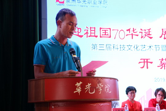 开幕式在全体人员起立合唱国歌中拉开。陈雄华副书记为开幕式致辞,他说,一年一度的校园科技文化艺术节是校园文化的浓缩,是学校办学特色的体现,更是全校师生展现自我、体现风采的舞台,学校将以“搭建一个平台,提供一次机会,展示一技之长,提高多种能力”为宗旨,全面活跃校园文化,培育良好校风学风,展现新时代大学生朝气蓬勃、昂扬向上的精神风貌。