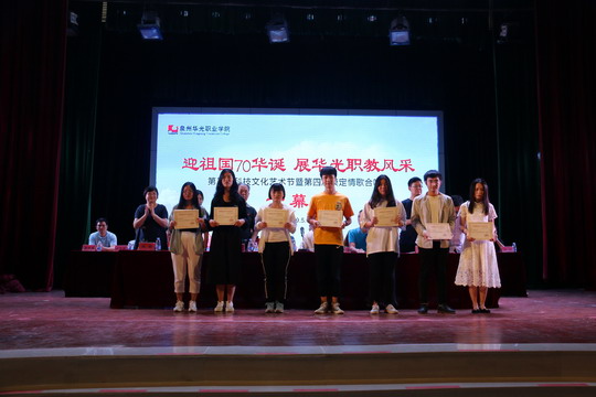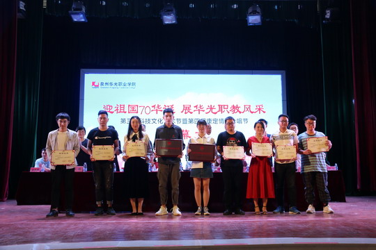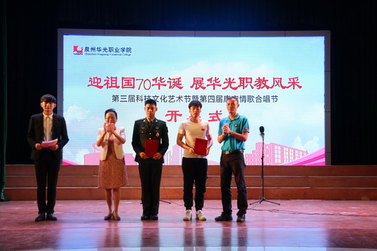 陈雅芳校长宣读泉州华光职业学院第三届“校园十佳人物”名单;陈雄华副书记宣读2018年度励志奖学金获得者名单和市、校五四评优表彰决定:摄影学院17级电影电视制作1班、教育学院18级学前教育3班,被共青团泉州市委授予“2018年度泉州市五四红旗团支部” 荣誉称号;健康管理学院王妹妹老师、艺术设计学院杨云航同学、摄影学院张厚映同学,被共青团泉州市委授予“2018年度泉州市优秀共青团干部”荣誉称号;艺术设计学院张宇森老师、陈光华同学、摄影学院王晓彤同学、商学院张良泉同学被共青团泉州市委授予“2018年度泉州市优秀共青团员”荣誉称号。校领导为获奖班级和个人颁奖,鼓励获奖同学不忘初心、再接再厉,并殷切希望全体同学以获奖的同学为榜样,勇争上游。