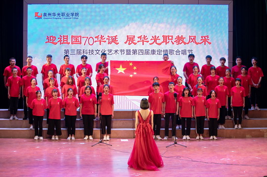 最后,艺术设计学院和校艺术团为观众带来快闪《我和我的祖国》,五星红旗飘扬在吴文季音乐厅,全体师生同声歌唱。接下来,各二级学院将结合本院专业特色,开展摄影、建筑技术、设计创意、创新创业、学前教育和养老服务技术技能等比赛,为学生搭建平台展示职教风采,提升职业能力。
