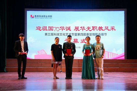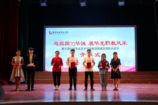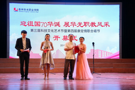 五月的阳光照耀百花争艳的大地,五四的精神涤荡年轻澎湃的心灵。在全国开展纪念新中国成立70周年、纪念五四运动100周年活动之际,我校于5月15日下午在吴文季音乐厅隆重举行第三届科技文化艺术节开幕式暨第四届康定情歌合唱节决赛,用青春嘹亮的歌声为第三届科技文化艺术节拉开大幕,我校董事长吴其萃、校长陈雅芳、党委副书记陈雄华、副校长林述琦出席开幕式,各处室、各二级学院领导和部分师生参加活动,本次活动由校团委副书记肖理香主持。