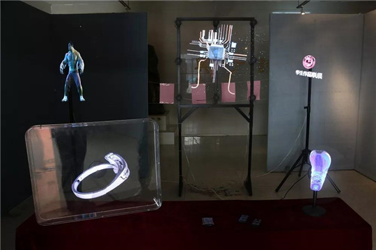 3D全息炫屏系列产品是一款利用人类视觉暂留(POV)技术,一列超高密度LED灯带旋转成像,从而呈现全息视觉效应的展示设备。广泛应用于展会展览、店铺店招、商场、影院、地铁、机场、酒店等人流密集区域。本次成果展主要展示学生运用C4D、AE等软件,模拟商业项目所制作的三维视效。