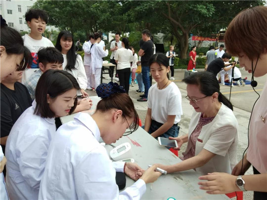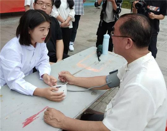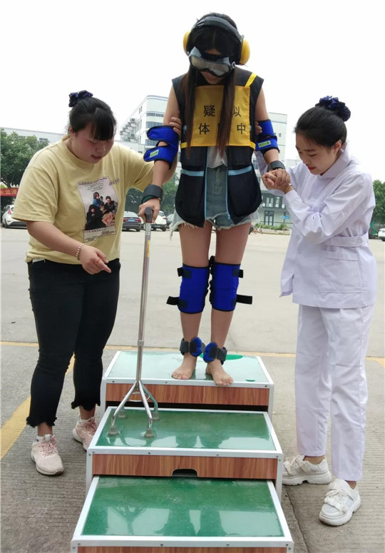 5月15日上午,健康管理学院于教学楼展厅前开展养老服务技能,向广大师生们展示学生学习成效。此次健康管理学院的同学们主要展示创伤包扎、心肺复苏、测量血压血糖、口腔护理、拐杖行走等方面的技能,并现场指导有兴趣的师生学习创伤包扎、心肺复苏等急救技能,引导老师、同学穿戴全套衰老体验装备体验使用拐杖行走于平地与楼梯间,体验衰老所带来的身体机能下降。