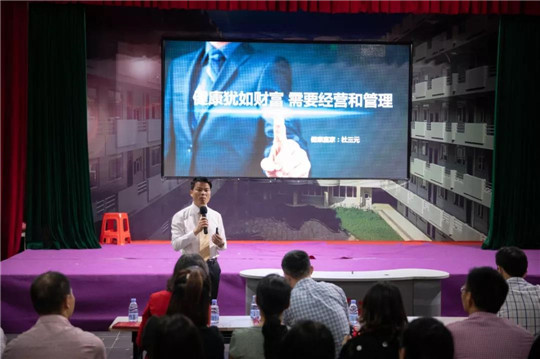 颁授仪式之后,中国老年保健协会膳食指导专委会委员、泉州市营养健康协会常务副会长,华光学院校外讲师、创业导师,国家一级营养师、一级健康管理师杜三元先生为在座嘉宾和师生做《健康犹如财富需要经营和管理》专题讲座。