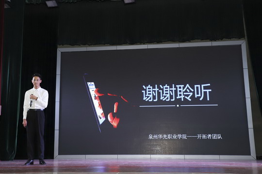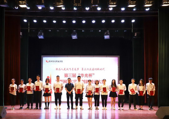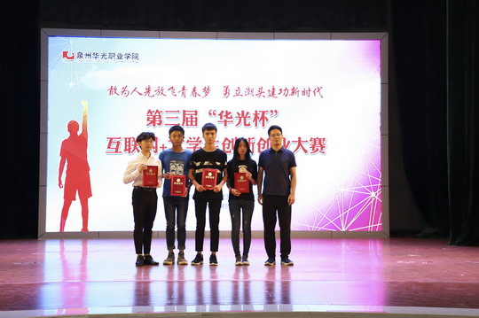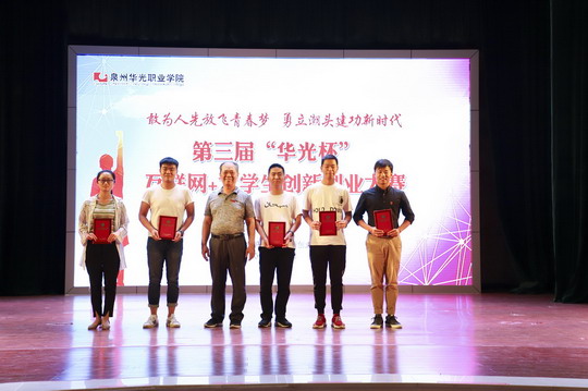 6月5日下午,我校第三届“华光杯”互联网+大学生创新创业大赛决赛在吴文季音乐厅成功举办。本次大赛由创新创业学院主办,我校副校长林述琦、党办主任郑桂梅、创新创业学院院长石东龙,以及各二级学院党支部书记、辅导员、参赛项目指导教师及部分学生代表出席本次大赛。华侨大学工商管理学院刘闲月博士、闽南科技学院商学院刘武强副院长、泉州信息工程学院苏世波处长、泉州轻工学院陈四海处长和金鹿集团魏前进总监担任本次大赛的评委。