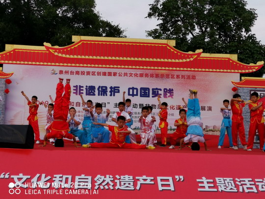 在6月8日泉州市举办的“文化和自然遗产日”活动上,一种模仿犬的攻击动作的武术引起市民的关注,它就是被列为国家级非物质文化遗产的地术拳。参加此次表演的代表队,来自泉州华光职业学院,为了更好地开展非遗传承教育,我校近期成立了华夏非物质文化遗产研究院地术拳传承基地,此次活动由该院非遗传承中心主任黄树煌带队。