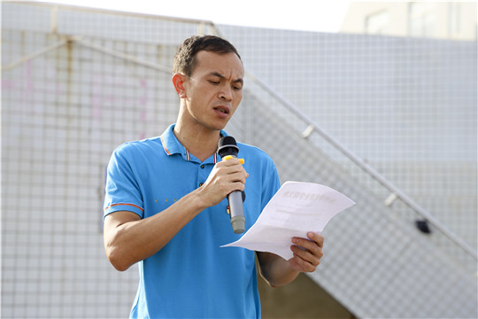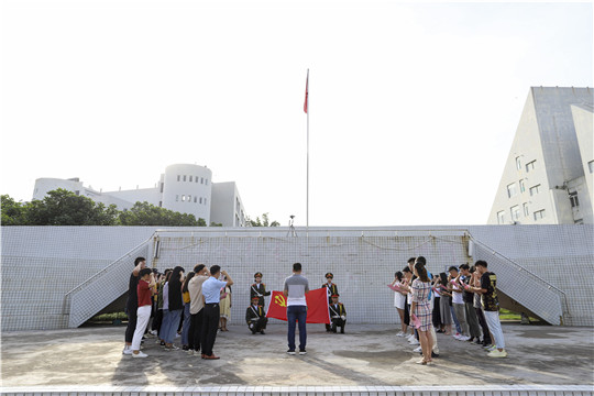 全体党员面向党旗、高举右手,在商学院党支部副书记蓝保原领誓下,以洪亮的声音、激昂的斗志进行入党宣誓,庄严的誓词响彻操场。宣誓完毕后,教育学院陈雨欣同志代表新党员发言。