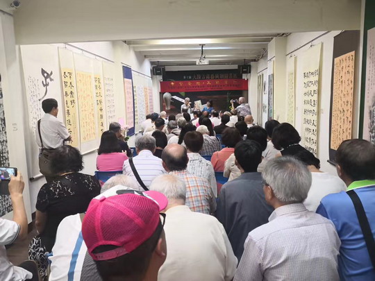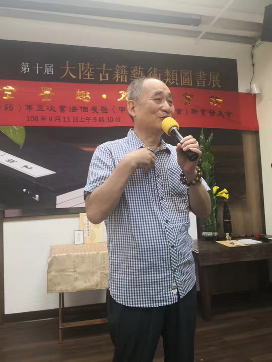 8月11日上午,吴董事长作为华光粥会会长参加在台北天元书店举行新北粥会二周年庆暨马豫平先生第三次书展及《甲骨文唐诗一百首》新书首发式。来自台北市各届艺文界群英一百人以及我校师生参加活动。在仪式上,吴其萃董事长与全球粥会陆炳文总会长、新北粥会林再生会长、北京粥会赵志伟会长等人均发表讲话,为中华传统文化在两岸的传承呼吁,共同期望祖国的和平统一。