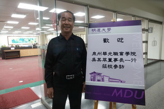 8月13日上午,赴与我校合作院校明道大学,参观校园及独具创意的妈祖文化学院,并同汪大永教长等校系领导一起座谈,确认下一步二校合作目标。下午,和赵志伟总裁一起到员林拜访台湾著名摄影家江村雄先生。