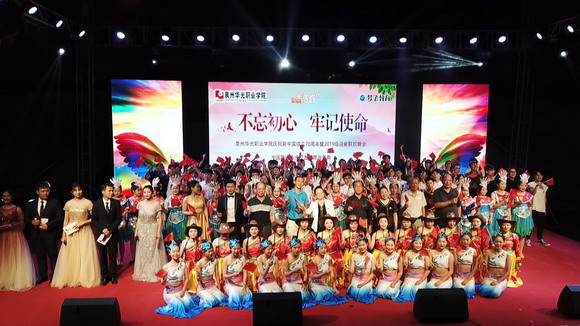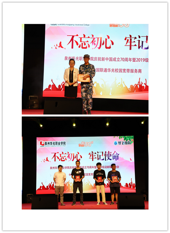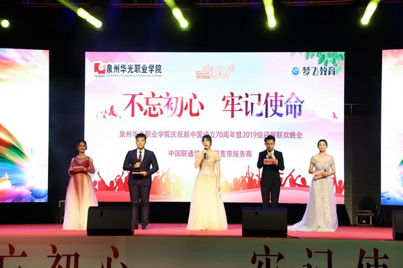 10月9日晚,寒露初起,秋风送爽,为迎接2019级全体新生的到来,由我校团委主办的庆祝新中国成立70周年暨“不忘初心·牢记使命”2019级迎新联欢晚会在华光操场隆重举行。我校董事长吴其萃,校长陈雅芳,党委书记吴颖芳、副书记陈雄华,副校长李君安、林述琦、方肃,艺术总监蔡焕松以及各二级学院、部门领导,中国联通台商投资区政企总经理刘展志和我校全体新生共联欢。