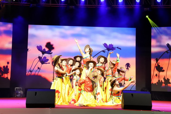 随着熟悉的《康定情歌》响起,我校保留节目《溜溜的康定溜溜的情》率先开场,热烈的音乐,专业的舞姿,闪烁着青春的活力和风采。接着,来自各二级学院、校社团的同学们奉上了一场精彩纷呈的演出,有学生自创的说唱表演,别具专业特色的小品演出,还有优雅别致的版纳风情舞和动感热烈的街舞相映成趣,时尚创意的走秀显示了同学们智慧和颜值双在线,饱含深情的朗诵向伟大的祖国表白。现场的领导和师生们欢欣鼓舞,迎新生,庆华诞,大家在新时代的歌舞中汲取力量,向着目标进发。