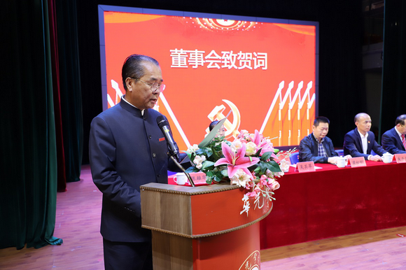 音乐厅主席台背景由10面鲜艳的红旗分列两侧,簇拥着镰刀和锤头组成的中国共产党党徽,气氛庄严、热烈。上午9时整,大会在雄壮的国歌声中拉开帷幕。吴其萃董事长代表学校董事会向泉州市委教育工委、市直教育系统党委对我校长期以来的关心和支持表示衷心的感谢,向泉州华光职业学院第二次党员大会的顺利召开表示诚挚的祝贺,向出席大会的各级领导表示热烈的欢迎!董事会对党委抢抓机遇,凝聚力量,振奋精神,奋发有为,在党建工作、立德树人、校园文化、师资建设、对外交流和民心工程等方面做出的工作表示满意,并将一如既往、坚定不渝地支持党委的工作!