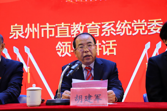 胡建军同志代表泉州市委教育工委、市直教育系统党委向大会的召开表示热烈的祝贺!向泉州华光职业学院全体党员干部和师生员工表示诚挚的问候!胡副书记在讲话中充分肯定了我校近年来取得的一系列成就,希望我校以本次党员大会召开为契机,进一步振奋精神,抢抓机遇,凝聚力量,奋发有为。胡副书记对我校即将产生的新一届党委领导班子提出三点要求:一是要坚持党对教育事业的全面领导,正确把握社会主义办学方向。二是要坚持把立德树人作为根本任务,努力培养社会主义事业合格建设者和可靠接班人。三是要坚持推进内涵式发展,不断提高办学质量。
