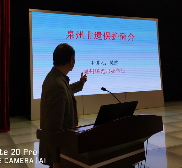 作为在全国较早成立非物质文化遗产研究机构和来自泉州的唯一高校专家学者,我校非物质文化遗产研究院院长吴然教授受到会议主办方的高度重视,在大会上做主旨发言。吴然教授介绍了泉州在非遗保护方面所取得的成绩 ,并向与会代表分享了泉州华光职业学院在非遗传承工作中所积累的经验,引起大家广泛关注和认可,提高了我校的知名度和社会影响力。