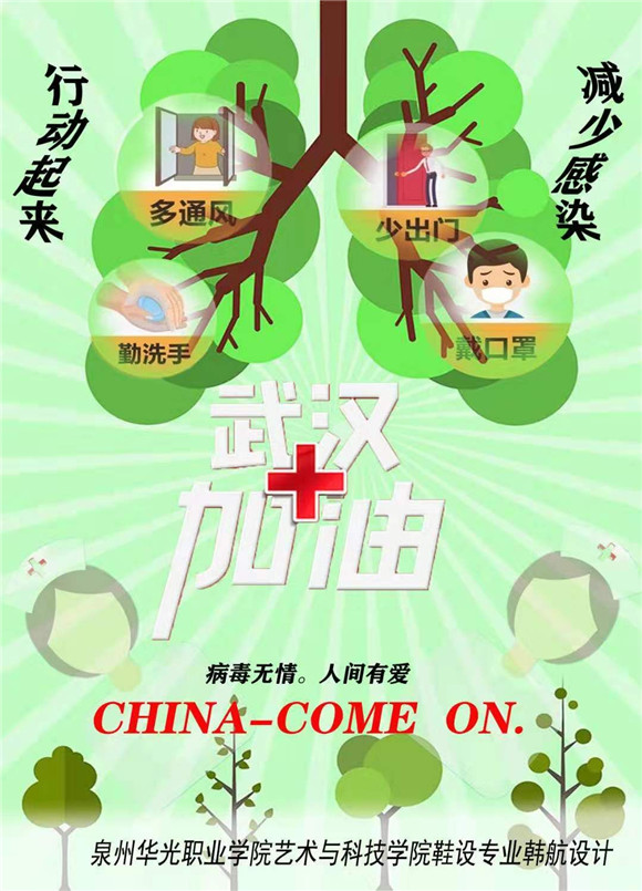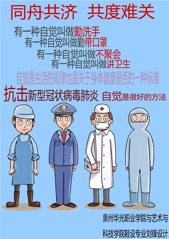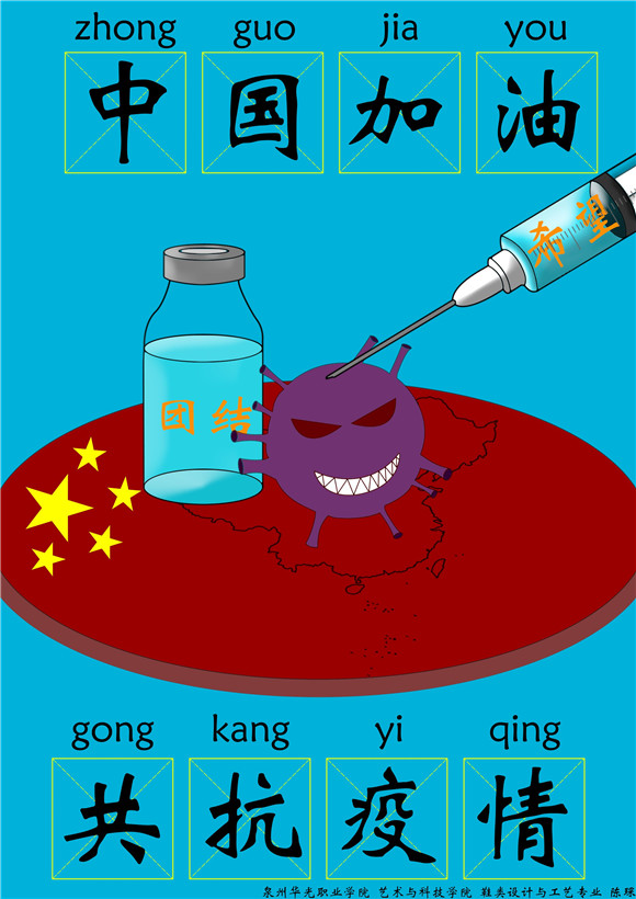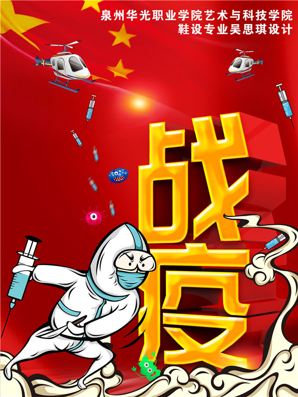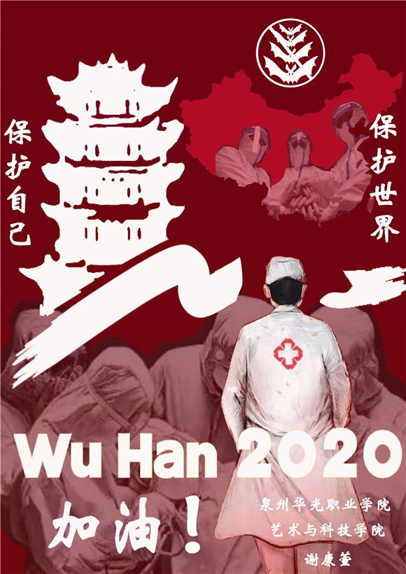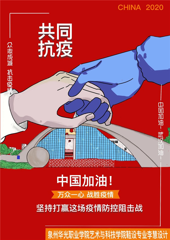 因为专业和能力的限制,虽然我们许多老师和学生们不能奋战在抗疫一线,但在疫情防控期间,我校各专业师生发挥专业特长,用自己特殊方式助力抗疫,为大家带去力量。今天又收到一批由我校艺术与科技学院学生创作设计的抗疫主题作品,请大家欣赏。