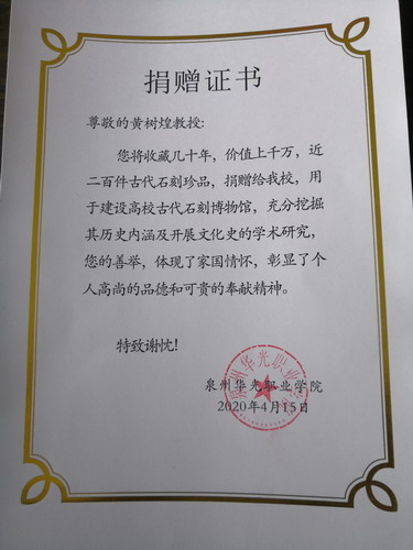4月13日,在全民抗疫的过程中,古代石刻收藏家黄树煌研究员,把收藏几十年,价值上千万,近二百件古代石刻珍品,捐赠给我校,用于建设高校云博物馆,为居家防疫的网民与师生提供线上教学与学术研究的园地——全新现代化的文博研究模式平台,为战胜疫情奉献自己的力量。