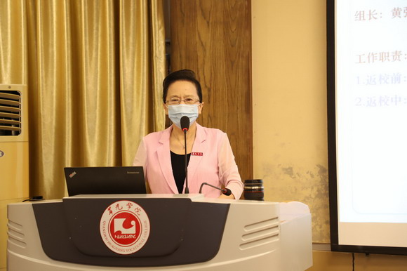 陈雅芳校长从“为防控疫情守土担责,为人才培养提质培优,为民心工程带来优惠”三个方面详细介绍了我校的疫情防控工作。陈校长指出,抗击疫情、平安返校、促进发展,进而实现转型升本是华光人不懈追求的目标,是新学期学校工作的一项伟大工程。全体学生工作者要精心考虑、精致设计、精细管理,千辛万苦做好学生工作,为抗击疫情迎难而上,为人才培养提质争优。